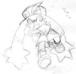 ![]() プレイステーション2のソフト、風のクロノア2から「Stepping Wind」のフォークポップアレンジ。 Re-Rise最後のイベント、RR-LASTSTAGE参加曲。 総勢4人で作ったBMS。がんばりました。 もうこれ書いてる時点で一年経ってるのであれですが まぁいろいろ描いたので置いておきます。没絵集です(違) さてこの曲、原曲がロックなので 当初予定してたBGAはクロノアたちが元気よく駆け回る、って感じのでした。 ということで練習用に描いてみたのがこれ。 ![]() できあがった曲を聴いたら全然違う感じでちょっとほっとしました(ぇ だってまったり系のほうが描くのが楽・・・げふげふ。 いや正直な話それでも大変でしたが; ![]() ![]() これはクロノア曲に決まった時に練習でかいたもの。 クロノアキャラって難しくてなかなか似ないので大変でした・・・。 あとこれは鉛筆で描いてスキャンしてますが 実際BGAで使ったやつはほとんど全部PCオンリーで描いてました。確か。 そのおかげか絵板で描くのが上達したようなー(?) これはほんとに没絵。 ![]() ラストシーンで花を見るとこですね。 こっちが実際使われてる方・・・の、ロロだけ。 クロノアはなんか微妙だったので(ぉ ![]() こういうふうにちゃんと二人とも全身描いてあったんです、実は。 だから何だって感じですが。 このシーンは二人が手繋いでるように見えるのがいいですね。うん(何 この曲(てかBGA)はなんとゆーか、 後に描いたものほど慣れてきてるせいかバランスがうまくとれてて ほんとは始めのほうに描いたやつとか描きなおししたいほどだったんですけど、 まぁ締め切りとかね・・・いろいろ・・・(死) |