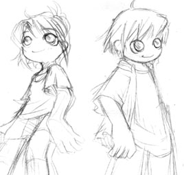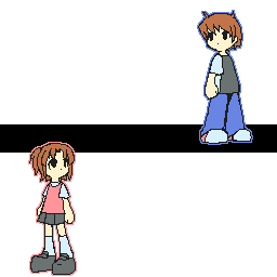 ![]() Is-mさんのオリジナル曲、「innocent infant」の続編にあたる曲。 BMS OF FIGHTERS 2004にcatnapチームとして参加しました。 続編 +かなり大きな大会に参加 +しかも全部一人でBGA作るのは初めて ということでプレッシャーがもの凄かったんですが、なんとか完成できました。 この曲のテーマはタイトルのとおり「思春期」ってことで、自分なりにいろいろと考えまして 「成長」をキーワードとして作っていった・・・ような気がします(ぉ キャラもinnocent infantの子たちの10年後くらいをイメージして・・・と言われてたので。 タイトル画像のラフがこちら。 ![]() ・・・うわぁ(何 曲が優しい感じだなーと感じたんで、 タイトル画像は主線無し系でいこうーと思ってたせいで なにやらすっごい適当ですね。 今見ると恥ずかしい・・・。 ![]() そんなこんなで主線無しで完成。 でもこのまま背景つけると背景と同化しちゃってガッカリなことに(笑)